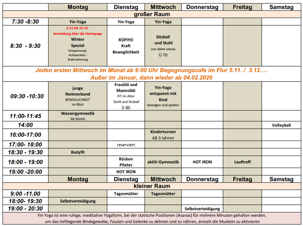 - 18:00-19:00 Rückentraining/Pilates für Männer